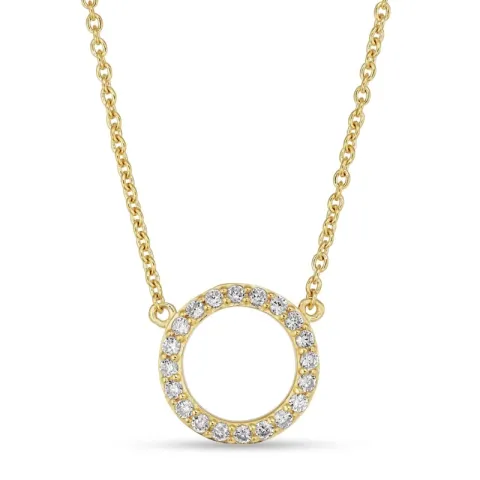 pyöreä zirkoni kaulaketju, jossa on riipus kullattua hopeaa kiiltävä pinta ja viistehiottu valkoinen zirkoni.