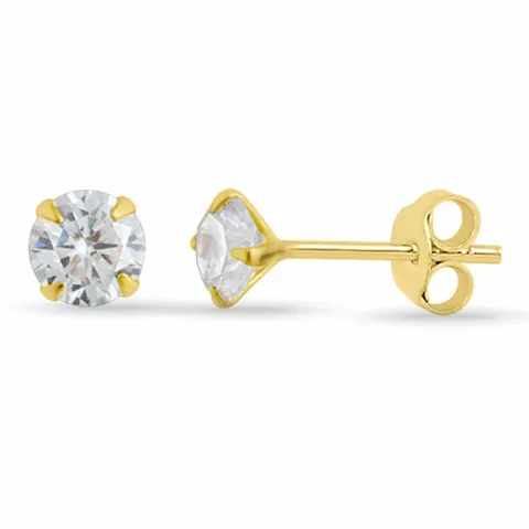 pyöreitä zirkoni nappikorvakorut i kullattu hopea kanssa kiiltävä pinta ja 2 viistehiottua valkoista zirkonia.