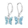 perhoset sininen lasten korvakorut i hopea kanssa kiiltävä pinta ja tasapintainen sininen kristalli.