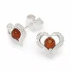 sydän nappikorvakorut i hopeaa kanssa kiiltävä pinta ja 2 tasapintainen konjakki värjätty meripihkaa.