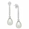 nappikorvakorut i hopeaa kanssa kiiltävä pinta ja 14 briljanttihiottua valkoista zirkonia 2 valkoista helmeä.