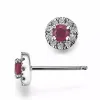 Pyöreitä punaista rubiini nappikorvakorut 14 karaatin valkokultaa kanssa timantti ja rubiini