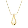 vedenkestävät pisara kaulaketju kullattu teräs kiiltävä pinta 1 valkoista synteettisiä helmiä.