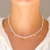 vedenkestävät sydän kaulaketju kullattu teräs kiiltävä pinta valkoinen synteettinen helmi.