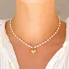 vedenkestävät sydän kaulaketju kullattu teräs kiiltävä pinta valkoinen synteettinen helmi.