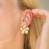 Vedenkestävät kukka korvarenkaat kullattu teräs - OCEANA