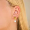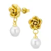 vedenkestävät kukka korvarenkaat i kullattu teräs kanssa kiiltävä pinta 2 valkoista helmeä.