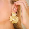 vedenkestävät kukka korvarenkaat kullattu teräs - OCEANA