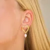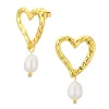 vedenkestävät sydän helmi korvarenkaat i kullattu teräs kanssa kiiltävä pinta 2 valkoista synteettisiä helmiä.