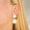 vedenkestävät korvarenkaat i kullattu teräs kanssa kiiltävä pinta 4 valkoista helmeä.