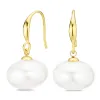 vedenkestävät helmi korvarenkaat i kullattu teräs kanssa kiiltävä pinta 2 valkoista synteettisiä helmiä.