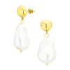 vedenkestävät helmi korvarenkaat i kullattu teräs kanssa kiiltävä pinta 2 valkoista synteettisiä helmiä.