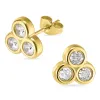 vedenkestävät zirkoni nappikorvakorut i kullattu teräs kanssa kiiltävä pinta ja 6 viistehiottua valkoista zirkonia.