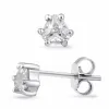 zirkoni solitaire-nappikorvakorut i hopea kanssa kiiltävä pinta ja 2 viistehiottua valkoista zirkonia.
